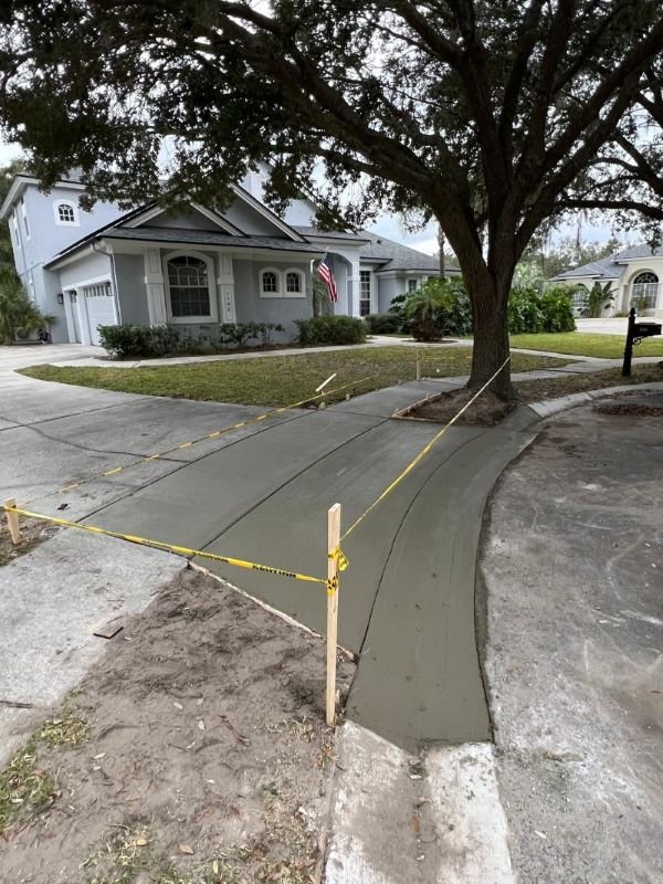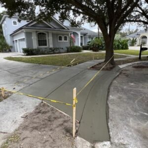 - Driveways and walkways: Pouring concrete or laying pavers.